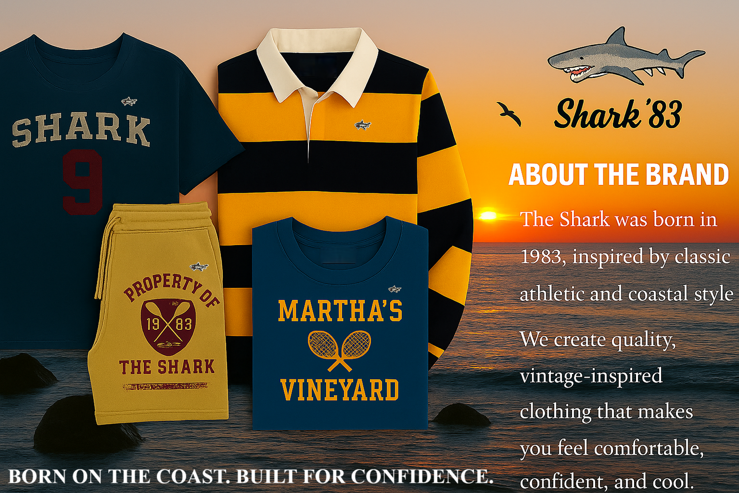 Every Shark ’83 piece is inspired by vintage coastal prep and crafted to make you feel unstoppable — on the boardwalk, in the city, or wherever life takes you.